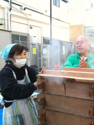 11月30日(日曜日)、森南町内会で恒例のお餅つき大会が開催され、地域の皆さんが集まり賑わいました。会場では、森中ボランティアが大活躍。お餅つきのサポートやパック詰め、お餅配布など、爽やか笑顔で活動する姿が印象的でした。 参加者によるお餅つき体験には長蛇の列ができ、もち米の蒸しあがりを待ちわびる様子が見られました。地域の絆を深めるこのイベントは、今年も大成功。皆さんお疲れさまでした、そして、ありがとうございました。