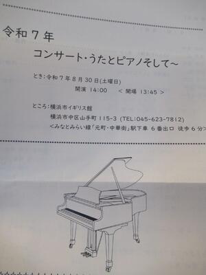8月30日(土曜日)14時~港の見える丘公園に佇む横浜市イギリス館にて「コンサート・歌とピアノそして~」が開催されました。