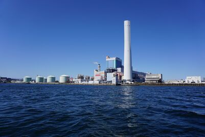 海から見る火力発電所は迫力があります!