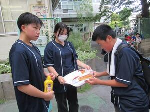 ホットドックの出前販売お手伝い 大きな声で売りました😄