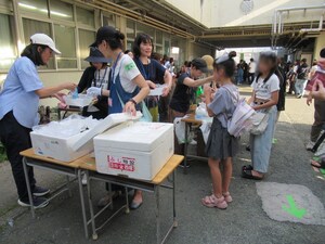 「ほっと・ナイト・夢まつり」は屏風浦小学校保護者・地域から10団体がブース出展され、今年は異例の暑さでしたが、どのブースも長蛇の列で賑わっていました。