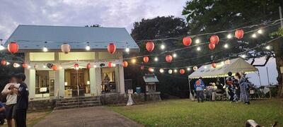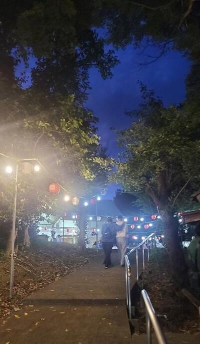 綺麗な夕焼けを眺めながら、夜の帳が下りるまで、峰白山神社の境内には訪れる皆さまの笑い声とともに、盆踊りの音色が響き渡りました。