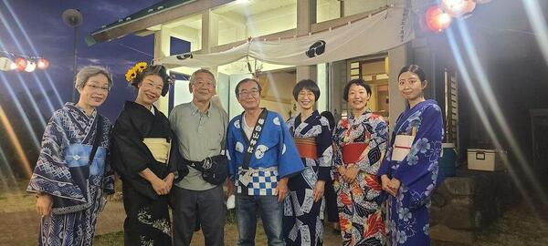 町内会長さんと総代表を囲んで。洋光台盆踊り部の皆さまの笑顔が華を添えます。