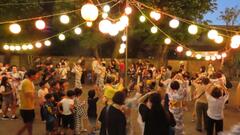 7月27日(日曜日)森南納涼祭が森六丁目公園で開催されました。会場には、冷たいうどんやフランクフルト、森南町内会名物のお赤飯、ヨーヨー釣りやスーパーボールすくい等の屋台があり、お祭りを楽しみにしていた地域の方々が会場の外まで長い列を作っていました。また、会場内では盆踊りも行い、多くの方々が輪になって笑顔で踊っていました。