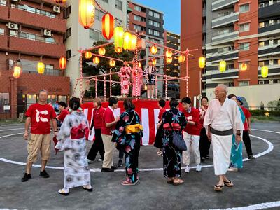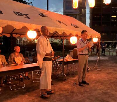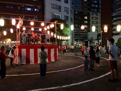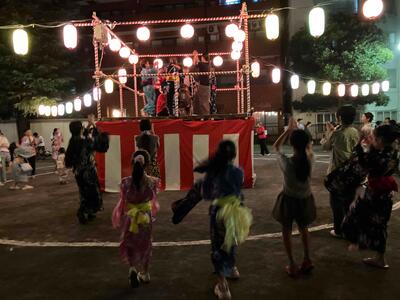 8月9日(土曜日)、「西町町内会 ベイアーク自治会 盆踊り大会」が根岸駅近くの西町公園で開催されました。三連休の初日で暑さも少しやわらぐ中、公園の中央にはやぐらが組まれて準備万端、地域の皆様が楽しみにしていた盆踊り大会が始まります。