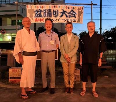 真夏の盆踊り大会で、熱中症防止のため、途中で踊りの休憩時間が設けられており、麦茶がふるまわれていました。会場準備や交通整理など準備や運営に携わられた町内会自治会の皆さま、関係者の皆さま、誠にありがとうございました。