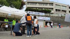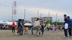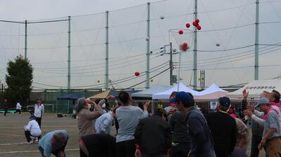 障害物競走(パン食い競争)や玉入れなどの運動会定番のプログラムの他、保健活動推進員による健康チェックのブースもあり行列が出来ていました。