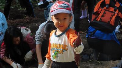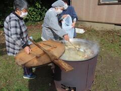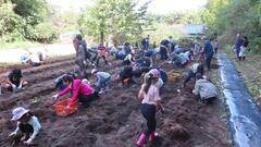 地域から255名が参加し、土とのふれあいを楽しみました。今年はコロナで中止していた昼食会も実施し、畑で汗を流した後の家族や友達との美味しい食事も楽しみました。早朝から準備していた300人前のとん汁といもご飯も綺麗に無くなり、子どもから大人まで笑顔溢れる大盛況のイベントになりました。