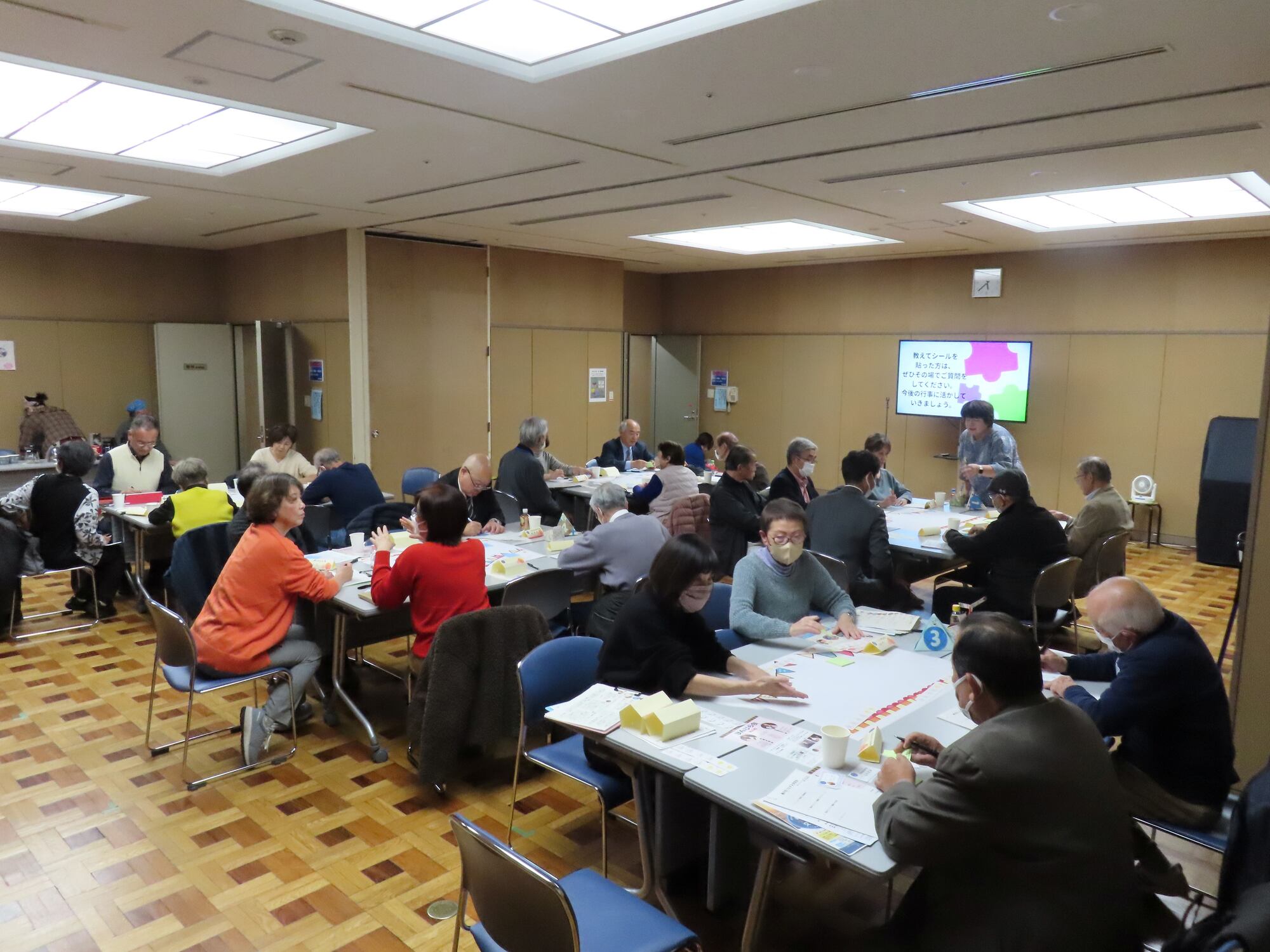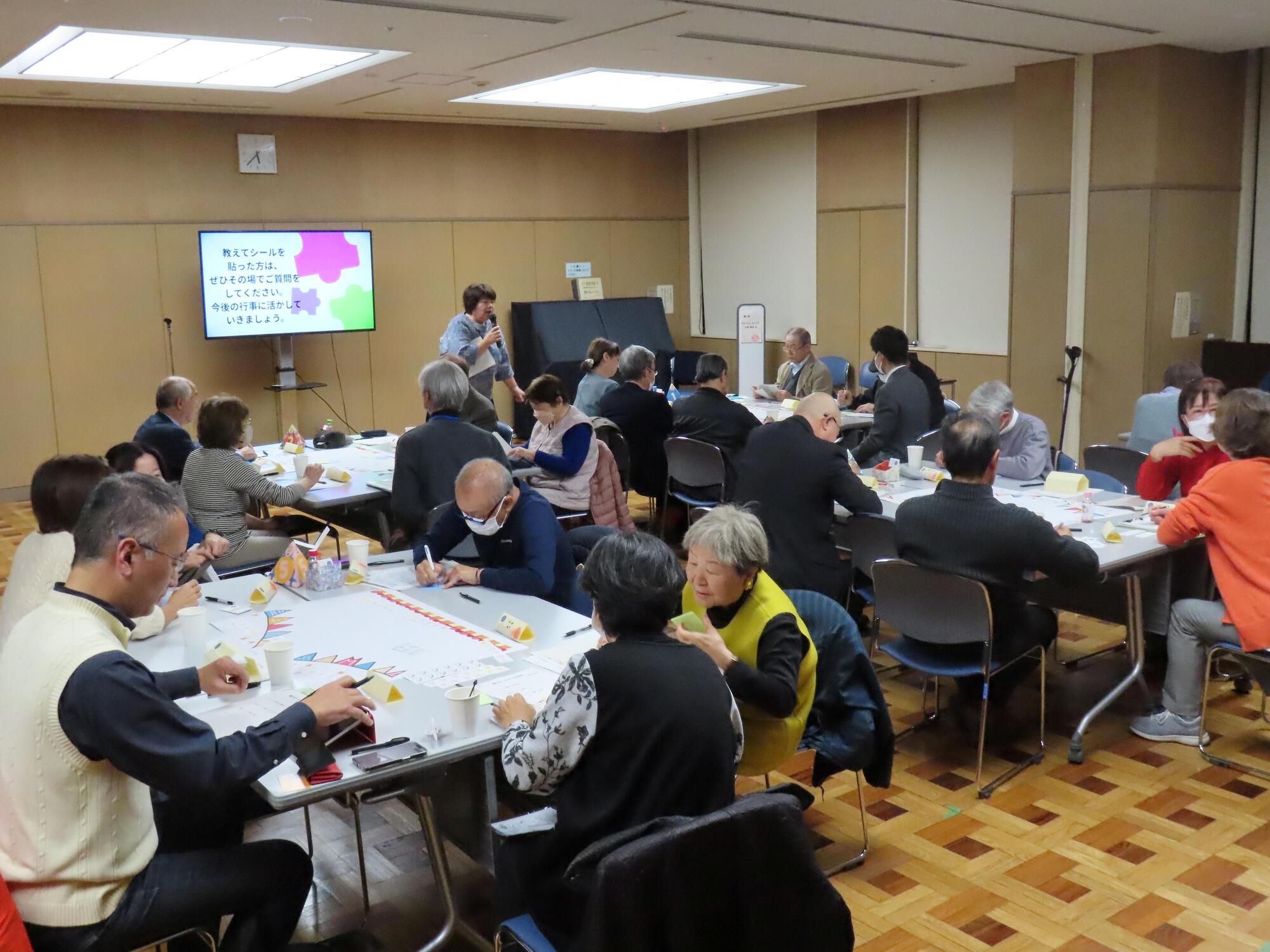当日はNPO法人まちラボ代表の大越様にファシリテーターをお願いし、自治会町内会や民生・児童委員など地域の方々21名と、地域で様々な活動を行っている地域ボランティア講師(まちの先生)9団体・個人の参加のもと、リラックスした雰囲気の中で地域行事についての情報交換や交流が行われました。