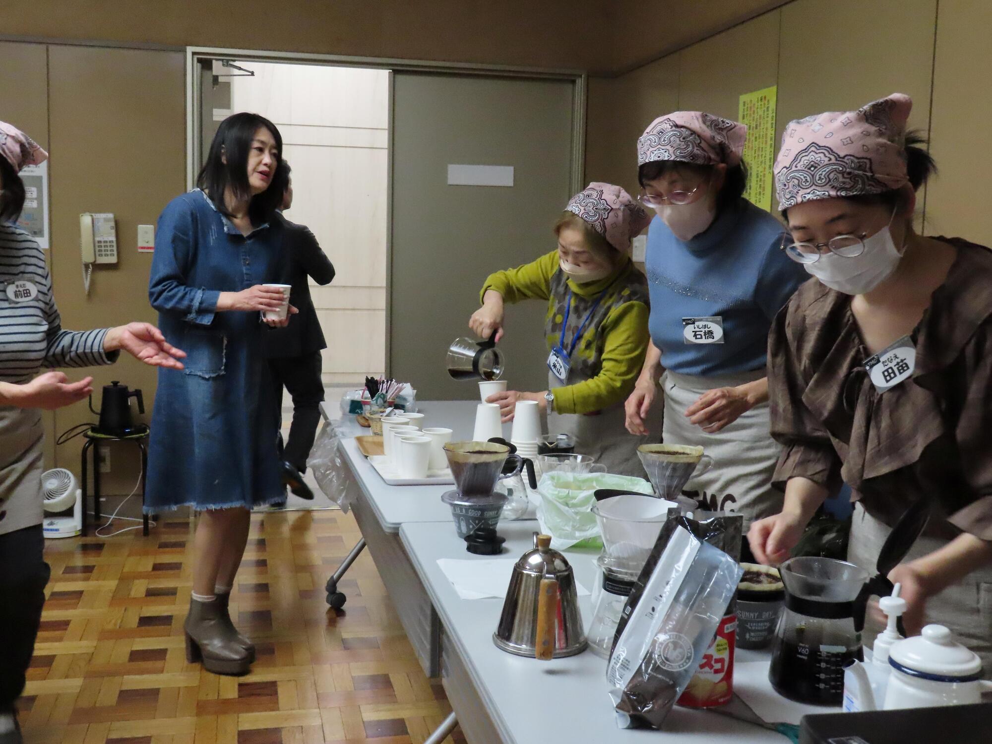 1時間という短い時間ではありましたが、コーヒー会の皆さんによる淹れたてのコーヒーを味わいながら、地域ボランティア講師との交流やカフェトークは大いに盛り上がり、「イベントの盛り上げの参考になった」「もっと皆さんと話したかった」という声が聞かれました。