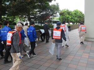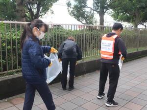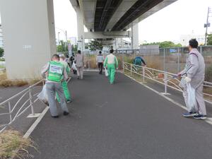 令和7年10月23日(木曜日)に、横浜マラソン2025のコース沿道を、磯子事業会、環境事業推進委員、磯子区役所等がクリーンアップしました。この清掃活動は、磯子区と磯子事業会の地域包括連携協定に基づき、磯子事業会、磯子区環境事業推進委員、区役所等が協働で行うもので、日清オイリオ横浜磯子事業場グリーンゾーンを出発点に根岸方面と新杉田方面に分かれ、およそ110人で行いました。