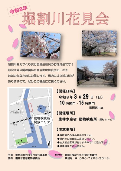 堀割川沿いの桜並木を間近でご覧いただける年に一度の機会です。