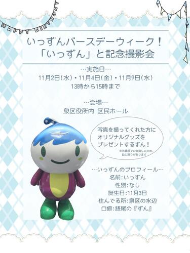 泉区マスコットキャラクター「いっずん」と記念写真を撮ろう!