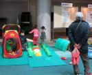 ボールハウスや平均台を使って楽しく遊んでもらいました。途中、いっずんも登場し、こどもたちは大歓声!