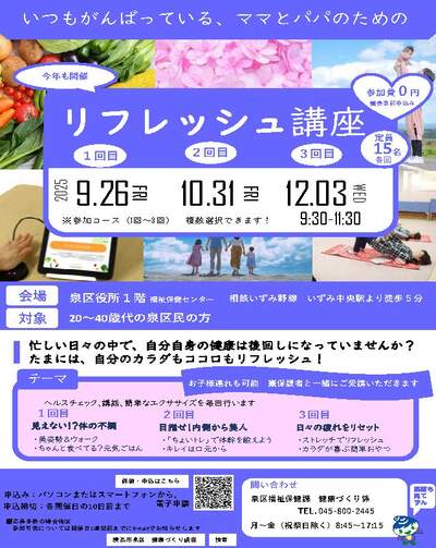 忙しい日々の中で、自分自身の健康は後回しになっていませんか?たまには、自分のカラダもココロもリフレッシュ!