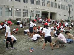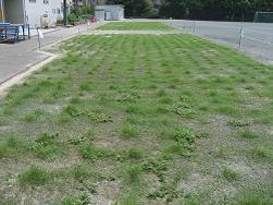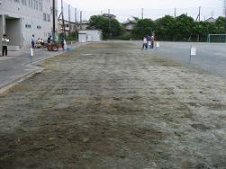 葛野小学校では、校庭の一部約350平方メートルの芝生化に挑戦します。