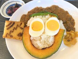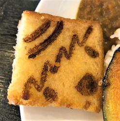キーマカレーはいっずんの顔を模したちょっと愛嬌のある盛り付けといっずんの顔の焼き印が入った揚げパンがついています。適度な辛さのキーマカレーはご飯が進んでしまいます。食欲が落ちる暑いこの時期に、強い味方となりそうです。