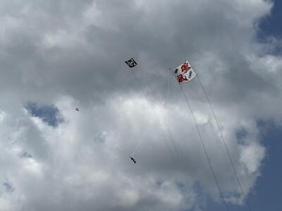 晴天の下5月5日のこどもの日に、深谷通信所跡地中央広場で「第16回いずみ相模凧揚げ会」が開催されました。今年の風は凧揚げにはベストのコンディションで、今年の一字「創」の字が描かれた大凧をはじめ、子供たちが体験で揚げた中凧も天高く舞い上がり、沢山の区民の方に相模凧の雄姿を楽しんで頂けました。私も大凧揚げに参加させていただきましたが、凧の引く力はとても強く、保存会の方々にサポートして頂かなければ体を持っていかれるくらいの迫力でした。子供のころに見たテレビのヒーローもので、「仮面の忍者赤影」という番組がありましたが、その中で白影という忍者が大凧に乗って現れるシーンがあるのですが、条件がそろえば出来るのではないかと感じるほどです。参加した子供たちも力強い相模凧に興奮して、凧揚げを楽しんでいました。