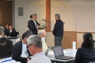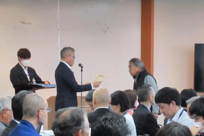 また、総会の中で、永年、地域防災拠点運営委員会の委員長を務められた3名の方に、感謝状を贈りました。改めて、災害時の準備等、地域のためにご尽力いただきましたことに感謝申し上げます。
