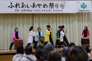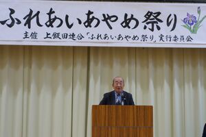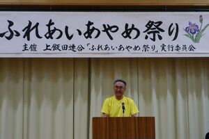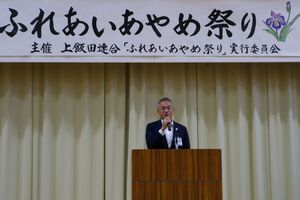 6月1日、上飯田地区センターで上飯田連合自治会「ふれあいあやめ祭り」が開催されました。昨年の「ふれあいあやめ祭り」は、朝方の雨で急遽、模擬店のレイアウトを変更するなどの対応を迫られましたが、今年は前日の雨風が嘘のように止み、とても良い天気の下で開催することができました。ステージでは開会式の後、上飯田中学校吹奏楽部による演奏、南瀬谷中学校和太鼓部による実演技が披露され、絵画や写真などの作品展や保健活動推進員による健康・体力測定、環境事業推進委員による分別体験も行われました。また、焼きそば、焼き鳥などの模擬店のほか、福祉作業所のパンやクッキー、染め物ハンカチ等の販売などで賑わい、私も焼きそばと焼き鳥、落花生を購入しました。