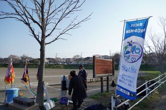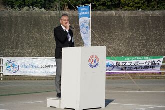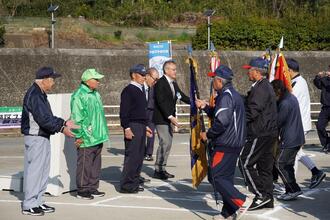 3月22日、和泉川遊水地4池で、泉区制40周年記念事業「第27回 泉区長杯争奪ソフトボール大会」の開会式が開催されました。青空の下、前大会優勝チーム、準優勝チームから優勝旗とカップが返還され、バンブードリームスと弥生台ビッキーズの代表者による選手宣誓により、本大会の幕が切って落とされました。これから4か月にわたって、33チームが各クラスに分かれて優勝を目指して戦います。今年は泉区制40周年であるとともに、泉区スポーツ協会、泉区ソフトボール協会も40周年を迎える記念すべき年になりますので、どのチームも優勝目指して頑張って頂きたいと思います。なにより、この大会を通じて、出場する選手の皆様には記憶に残る年としていただくとともに、周囲の方にも一緒になって40周年を盛り上げて頂けると幸いです。