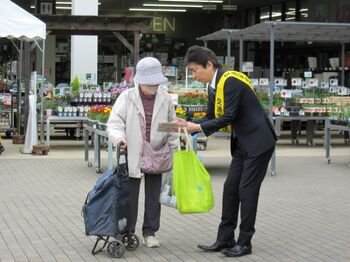 泉警察署と連携し、泉区交通安全対策協議会のメンバーの皆様とご一緒に、住民の皆様に交通安全の大切さについて改めて考えていただきたく、道行く方々にお声掛けさせていただきました。