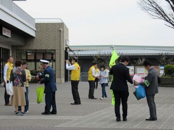 「春の全国交通安全運動」初日の4月6日(月曜日)に、いずみ野駅前で啓発キャンペーンを行いました。