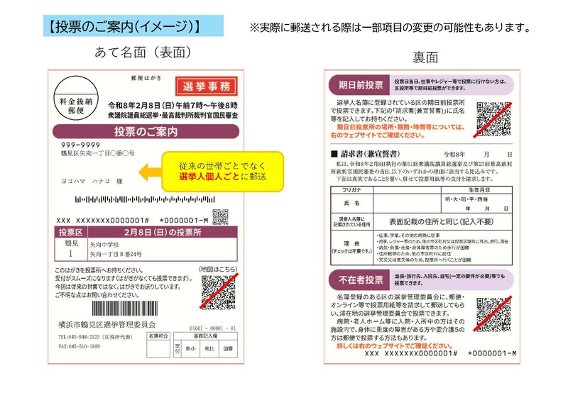 【注意】投票のご案内は「世帯毎の封書」ではなく「1人1枚のハガキ」で郵送します。