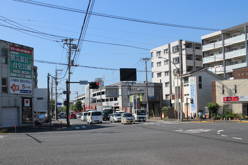 長後街道と環状4号線が交わる和泉坂上交差点で、長後方面に向かう長後街道を撮影した写真です。