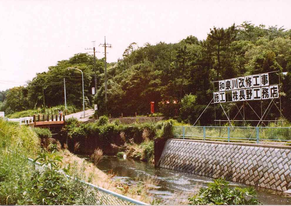 和泉川の河川改修工事が赤坂橋(写真左)の上流まで行われていました。環状4号線の建設で林は道路に変わりました。