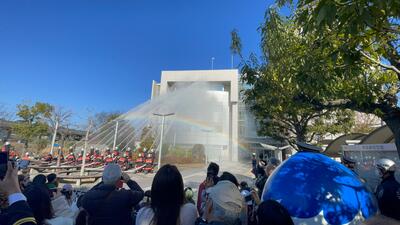 前回の出初式では、1日「消防士」でしたが、今回は1日「消防長」として登場したずん!