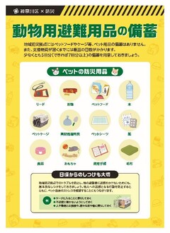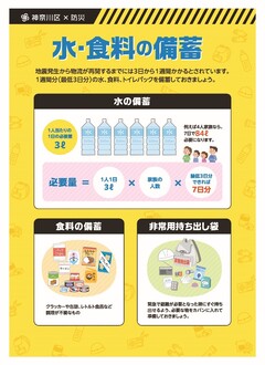 | 水・食料の備蓄(PDF:2,001KB) | 簡易トイレの備蓄(PDF:1,701KB) | ローリングストック(循環備蓄)(PDF:2,209KB) | ペット用備蓄(PDF:1,499KB) |