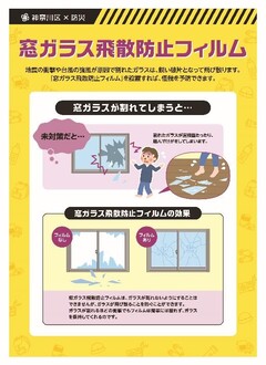 | 家の中の防災対策(PDF:1,192KB) | 窓ガラス飛散防止フィルム(PDF:1,278KB) | 地震火災対策(PDF:1,512KB) |