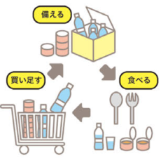 食料や生活用品等の避難生活に必要なものは、日常的に少し多めの備蓄を行い、普段の生活の中で消費し、使った分だけさらに買い足す、「ローリングストック」を行うことで、常に一定量の備蓄を行うことができます。使用期限や賞味期限等を定期的に確認しながら、備蓄を進めましょう。