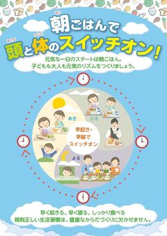 子どもも大人も「朝ごはん!」「朝ごはん」は、子どもから大人まで、どの世代の方にも大切な食事です。特に成長期の子どもたちにとっても、大人になるためのしっかりした体をつくるために欠かせないものです。朝ごはんを食べる習慣を子どもの頃からしっかり身につけて、生涯にわたる元気な体と心づくりをしていきましょう!
