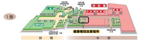 区役所本館の「かめ太郎健康階段」もご活用ください!