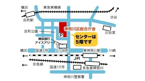 横浜市神奈川区広台太田町3-8(神奈川区役所本館5階)- 反町駅(東急)徒歩約7分