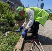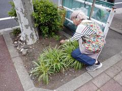 平成30年4月から町内会の役員になったことをきっかけに清掃活動などを開始しました。当初は、週2日ほど近所の清掃や公園の管理、小学校の農園のお手伝いなどを行っていましたが、退職を機に週4日に活動日数を増やしています。天気次第で活動していますが、朝から活動を始めると夕方まで作業をしてしまう日も多々あります。羽沢横浜国大駅から高山橋までの歩道が草だらけだったため、一人でコツコツと木の根っこや笹の根取り、花植えを行い、とてもきれいになりました。活動していて、暑い日は飴をくれたり、「ありがとう」と言われると、とてもやりがいを感じます。これからも元気なうちは続けていきたいです。