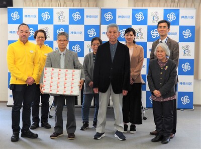 家具販売店のIKEA港北様から、区内の7つの市営・県営住宅の高齢者世帯の皆様に、362個のLED電球を寄贈いただき、3月30日に贈呈式を行いました。