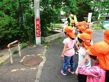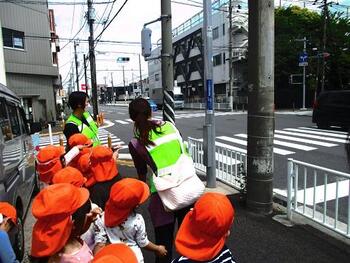 そして、散歩に出発。子どもたちが自分で考えられるように保育士が工夫して案内したり、説明をしたりしているのが印象的でした。また散歩中にすれ違うまちの方々は、子どもたちに笑顔で手を振ってくれたり挨拶を優しく返してくれたりしていました。そんな光景を見て、子どもたちが本当にたくさんの人たちに見守られて成長していくのだと改めて実感しました。