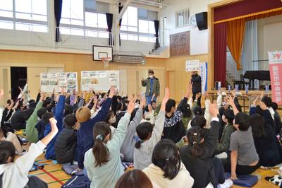 小学生からの鋭い質問が絶え間なく続き、その後のクイズ大会では会場が一体となって盛り上がり、ライブ会場にいるようでした。