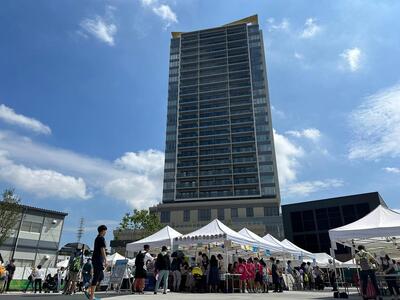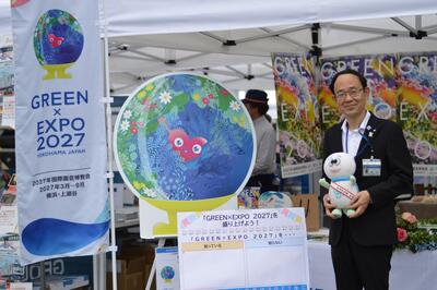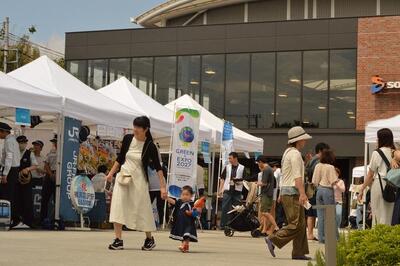 神奈川区は保土ケ谷区と合同で、「GREEN×EXPO 2027」のPRやゴミ分別ゲームを通じた広報を行いました。かめ太郎も出演したキャラクターのステージイベントは大人気で、多くの人が撮影していました。今後も、地域とともに羽沢地区を盛り上げたいと思います。