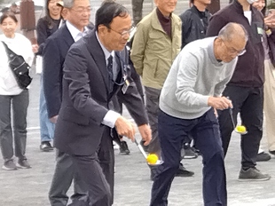 私も、三枚地区のみなさんと一緒にミカン運び競争に参加しました。