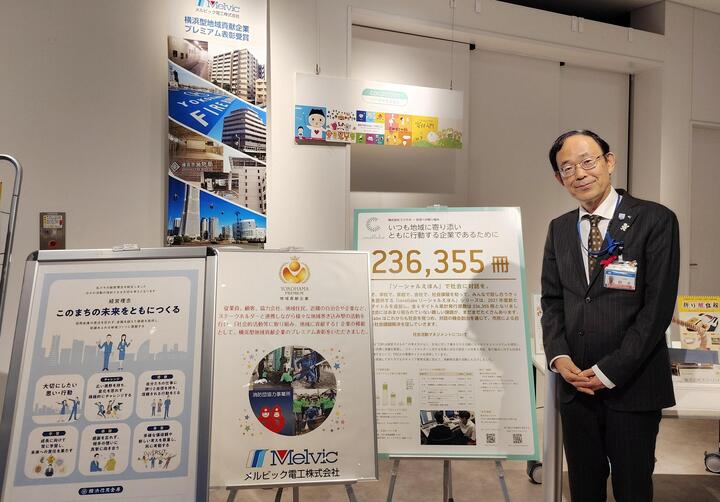 横浜市庁舎2階で※横浜型地域貢献企業に関する広報展示(12月16日~23日)が行われました。地元、神奈川区にある株式会社ココラボ、メルビック電工株式会社、横浜信用金庫(本社は中区)がプレミアム表彰企業として紹介されました。