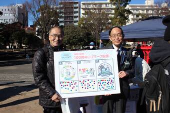 神奈川区と神奈川区制100周年記念事業実行委員会では、記念ロゴマークの区民投票を行っています。出初式に来ていたお子さんたちにも、シール投票を行ってもらいました。ご協力ありがとうございました。
