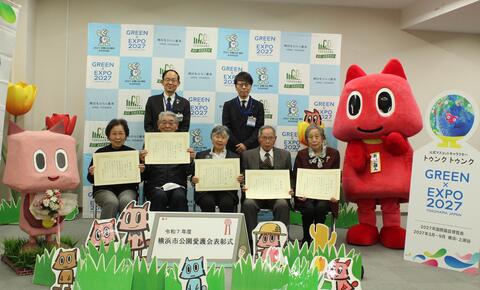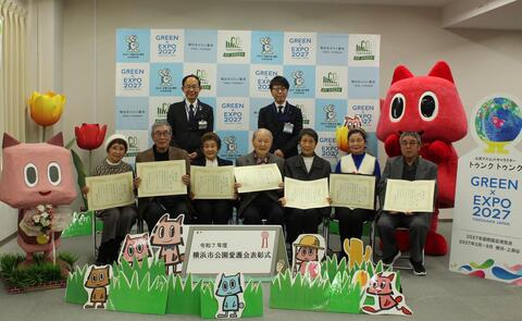 1月7日(水)に神奈川区公園愛護会のつどいを開催し、永年にわたり公園内の花壇整備や清掃などの公園愛護活動を続けてこられた18名の方に感謝を込めて区長表彰を行いました。
