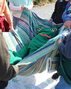 カエル人形搬送訓練の様子