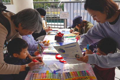 11月23日(日)、横浜ベイクォーターの「クリスマスマルシェ」において、GREEN×EXPO 2027のPRブースを出展し、間伐材を使ったオリジナルクラフトづくりを実施しました。