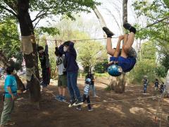 - プレイパークは「自分の責任で自由に遊ぶ」をモットーに、禁止事項を極力なくした外のあそび場です。大きな事故が起きないように見守り、子どもと一緒に自由な遊びを広げていくプレイリーダーがいます。みんなで楽しく一緒に遊ぼう!
