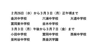 展示中学校:区内10中学校(金沢、六浦、大道、富岡東、並木、小田、富岡、西柴、釜利谷、西金沢学園)
